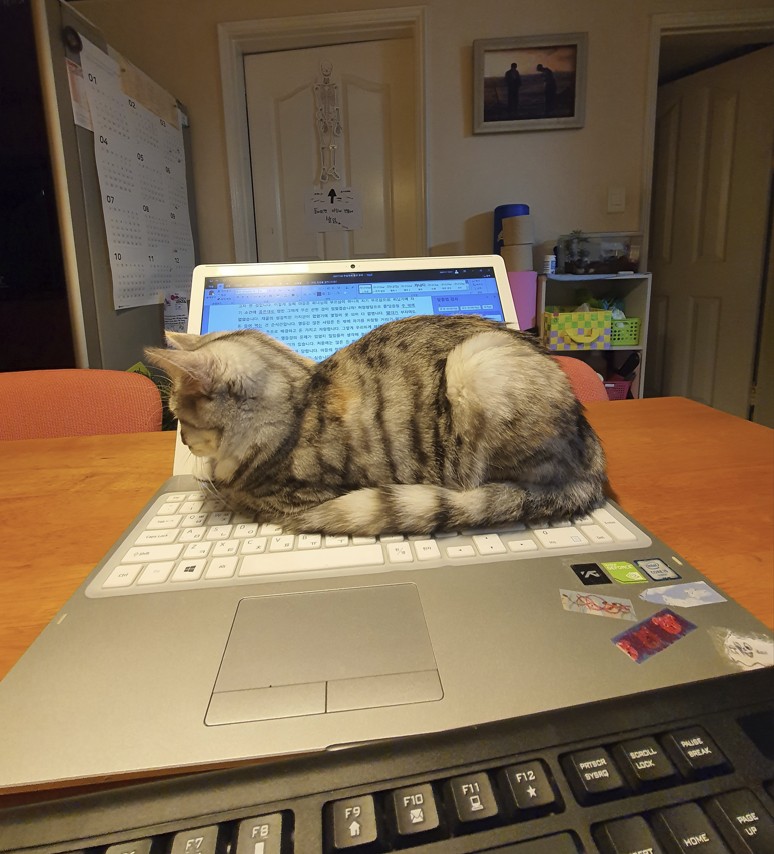 ✔️ 집사 노트북 위에서 따뜻한 낮잠 즐기기